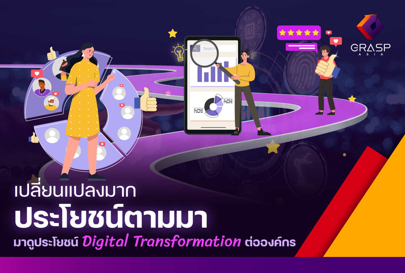 ทั้งหมดที่เรายกมา เป็นเพียงส่วนหนึ่งของประโยชน์ที่สามารถเห็นได้ชัดในการทำ Digital Transformation ที่จะส่งผลกระทบในเชิงบวกให้กับองค์กรและธุรกิจต่าง ๆ หากต้องการปรึกษาในด้านการเปลี่ยนแปลงทางดิจิทัลที่ดีต่อองค์กร สามารถทักมาสอบถามพวกเรา Grasp Asia กันได้เลย